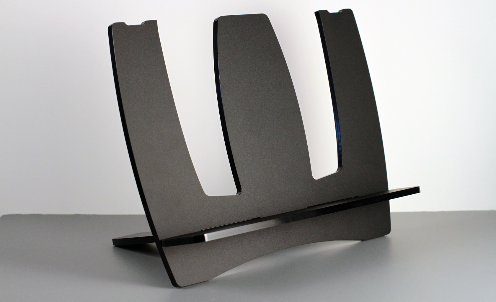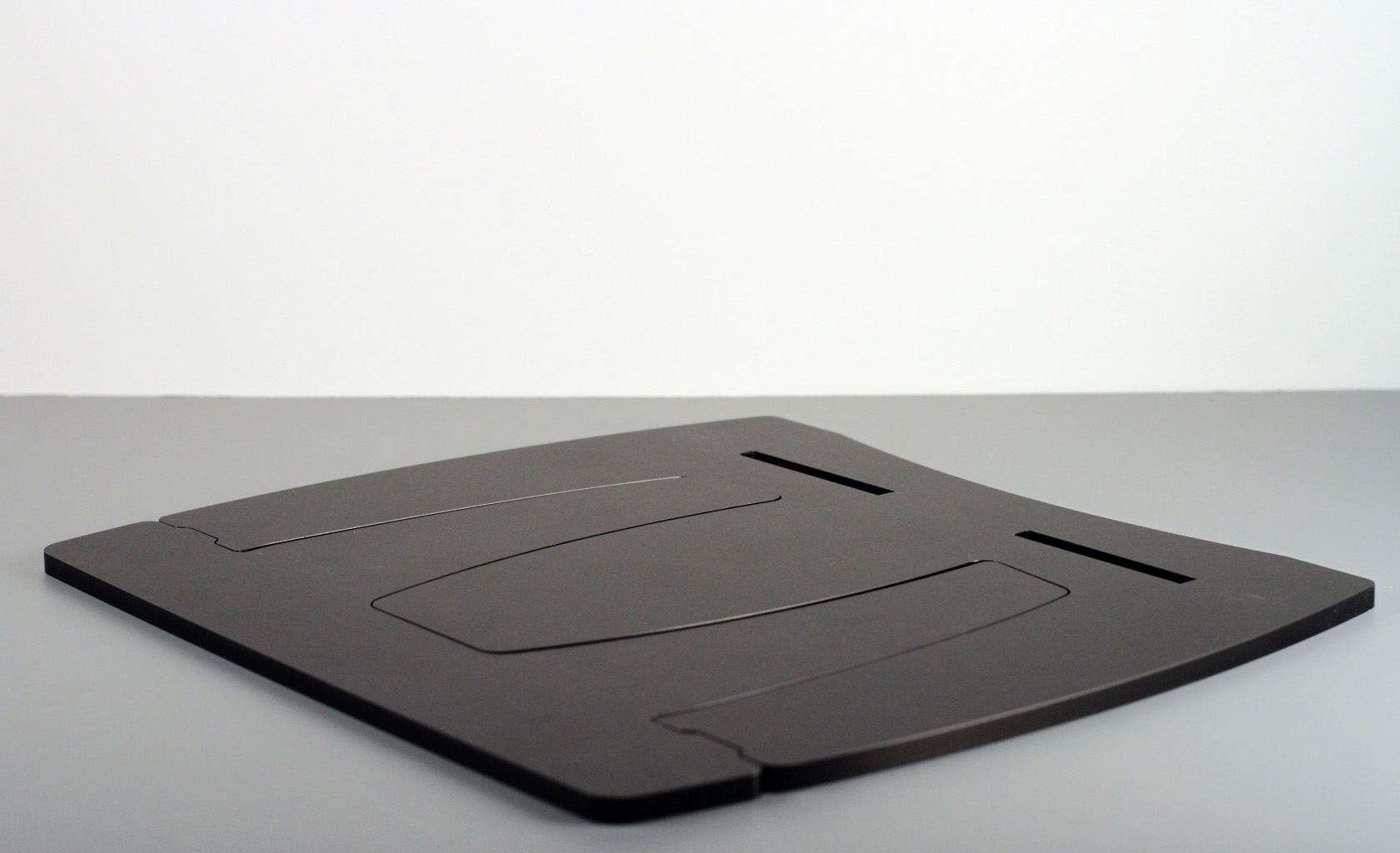 Low cost desktop music notes and document Easel, foldable flat and portable in a 'gig bag' matching notes / magazine size. Design for scalable and on demand production with zero capital investment. Customizations include retailer and client's own branding.