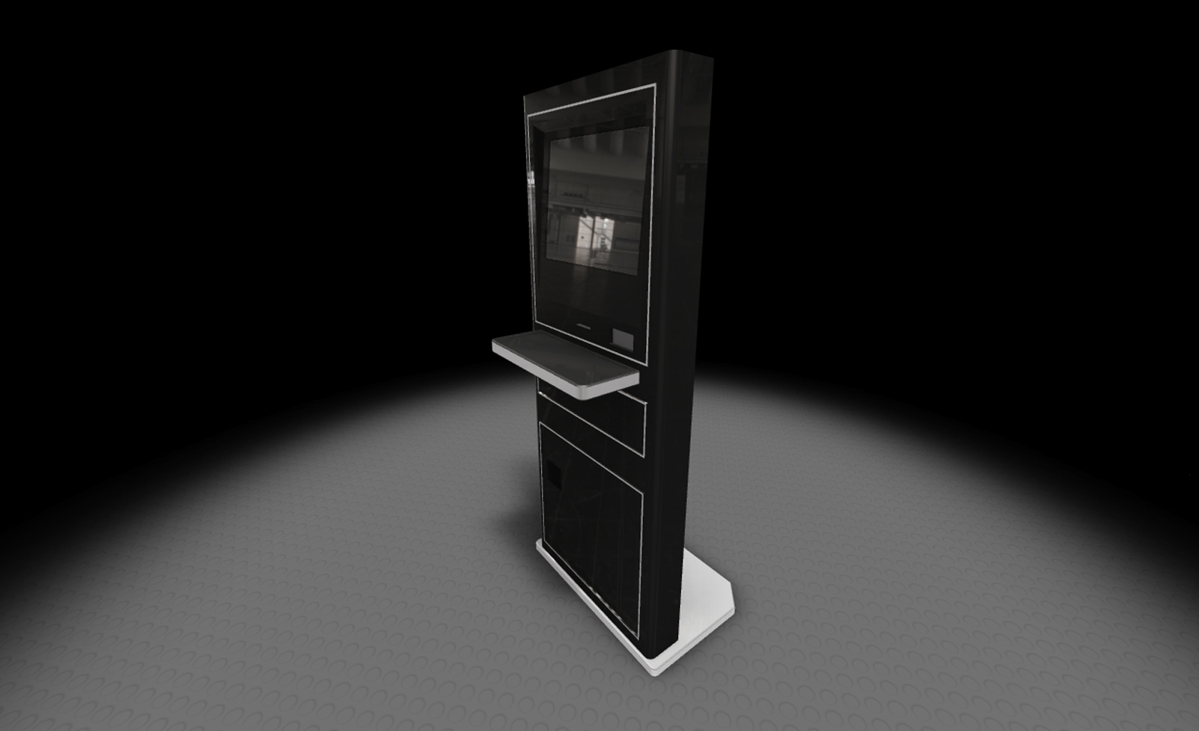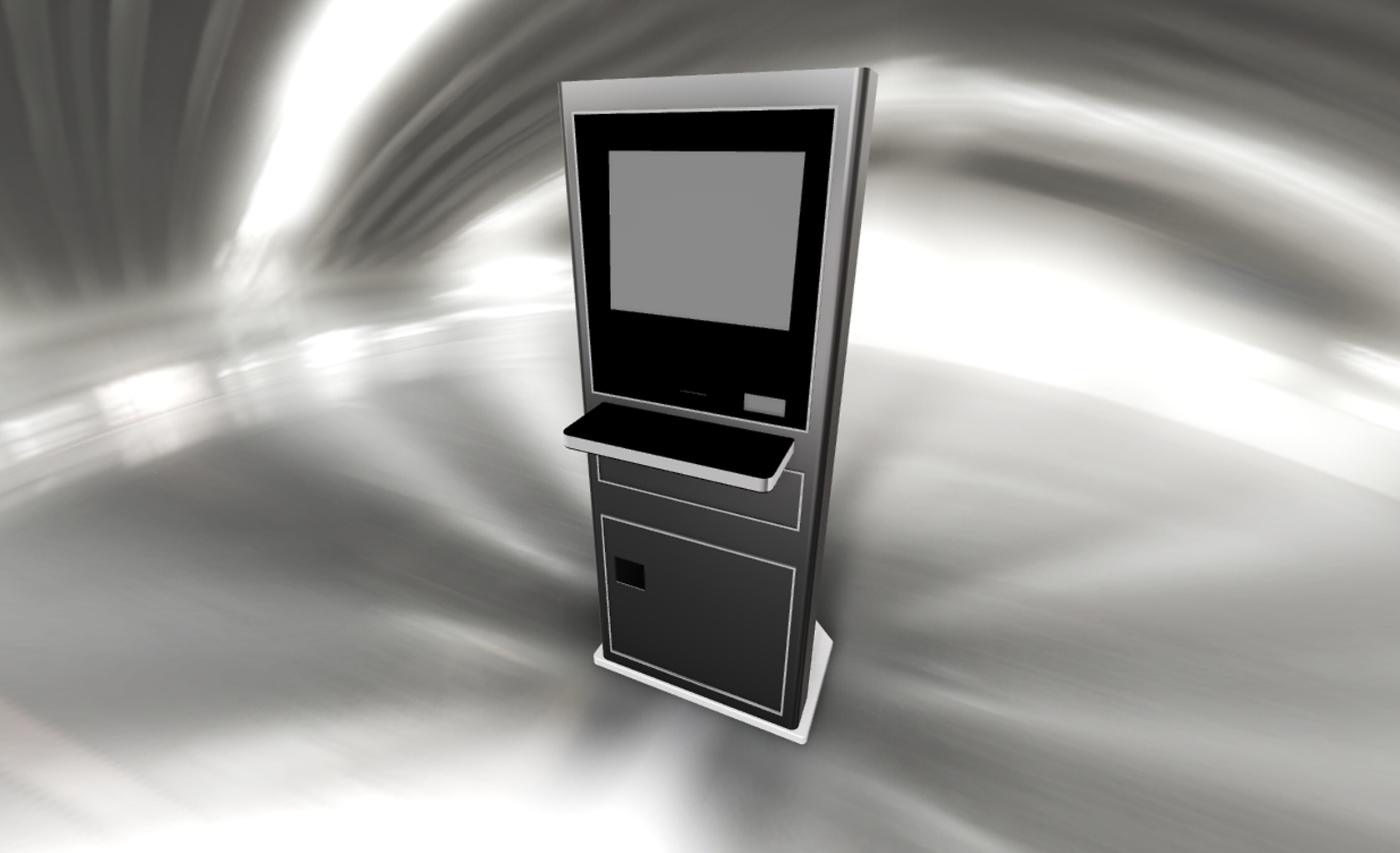 Custom design Kiosk for niche market segment complying to American with Disabilities Act. Ruggedized and modular design allowing several models with same core, covering optional keyboard, touch screen, bill & coin dispenser, credit card reader and printers.