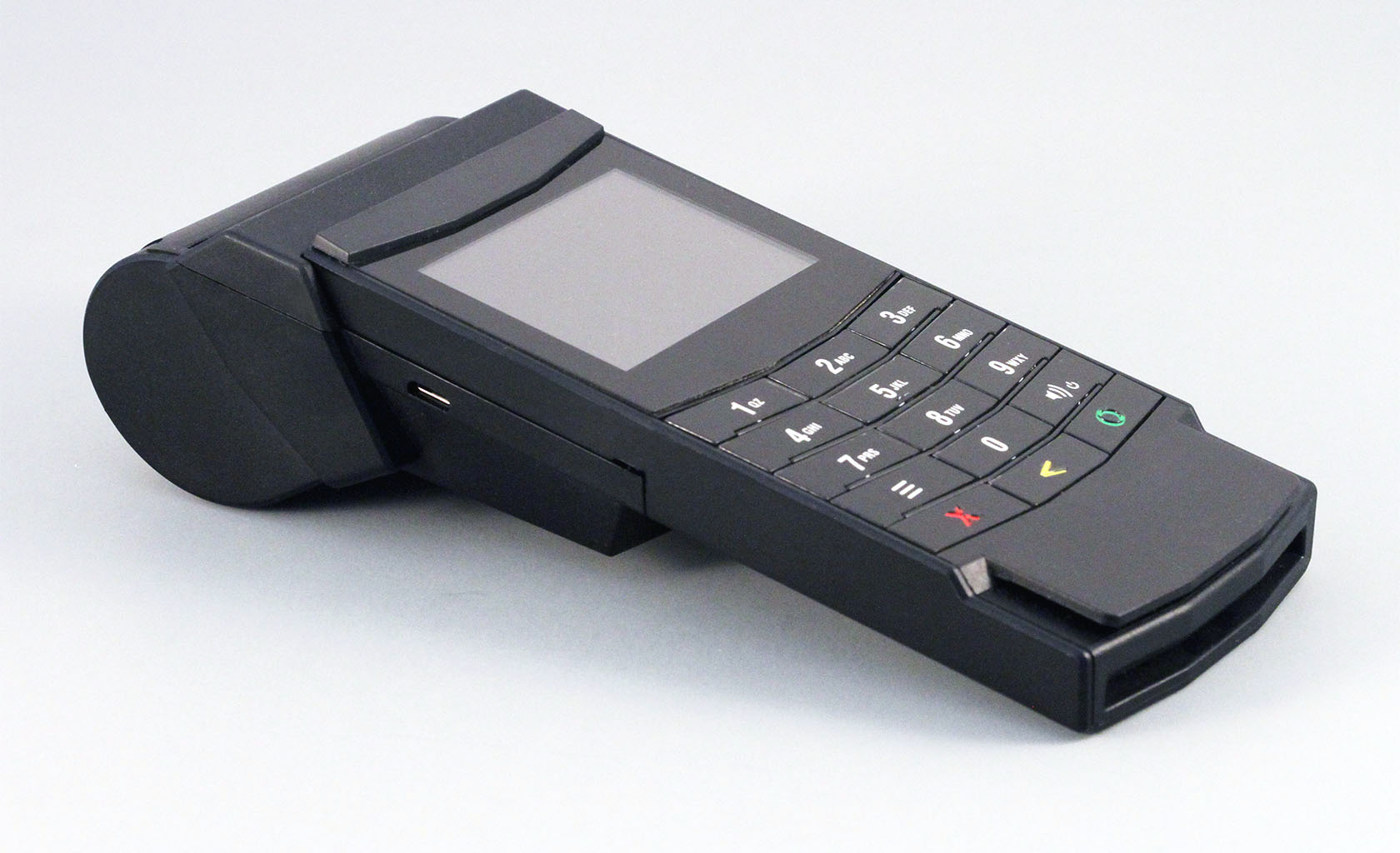 Point of Sale portable Device. Modular Design from Battery powered Base and Printer version to connected Cable version. 4G/LTE Blue Tooth and Wi-Fi connectivity and Touch Screen found on a smart phone are complemented with Smart (Chip) card reader, RFID (Card ‘TAP’) ; Magnetic Strip reader and ergonomic keypad in a physical volume just bit bigger than smart phone.