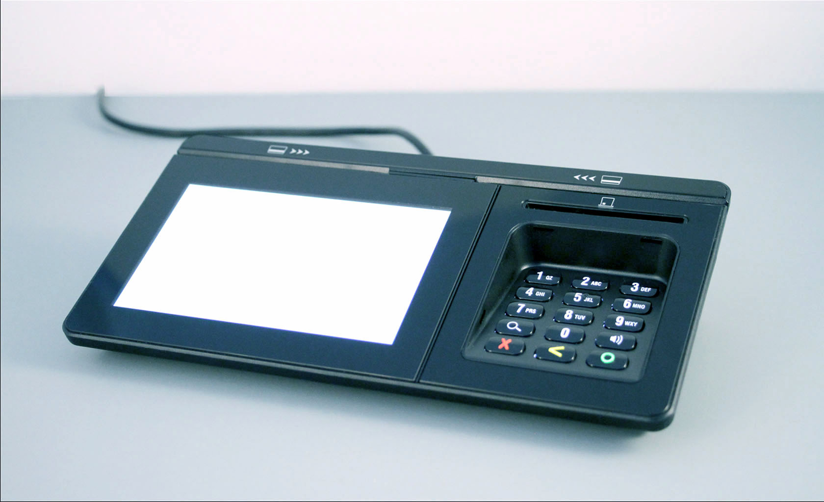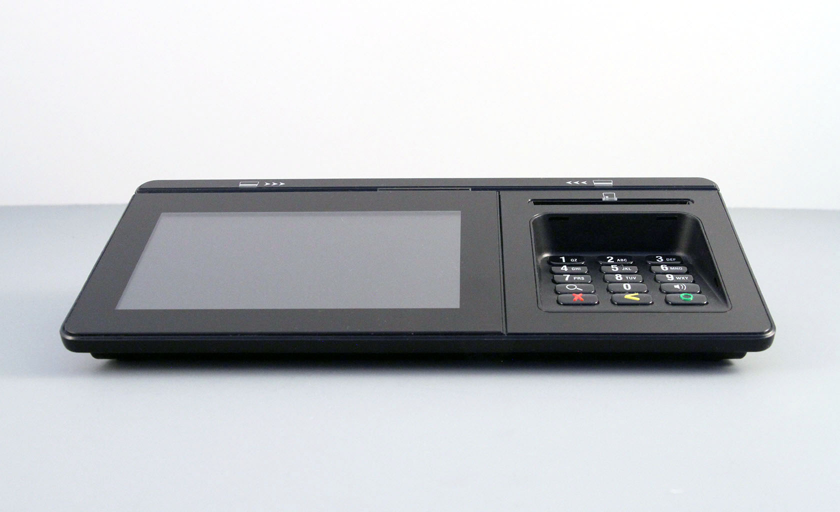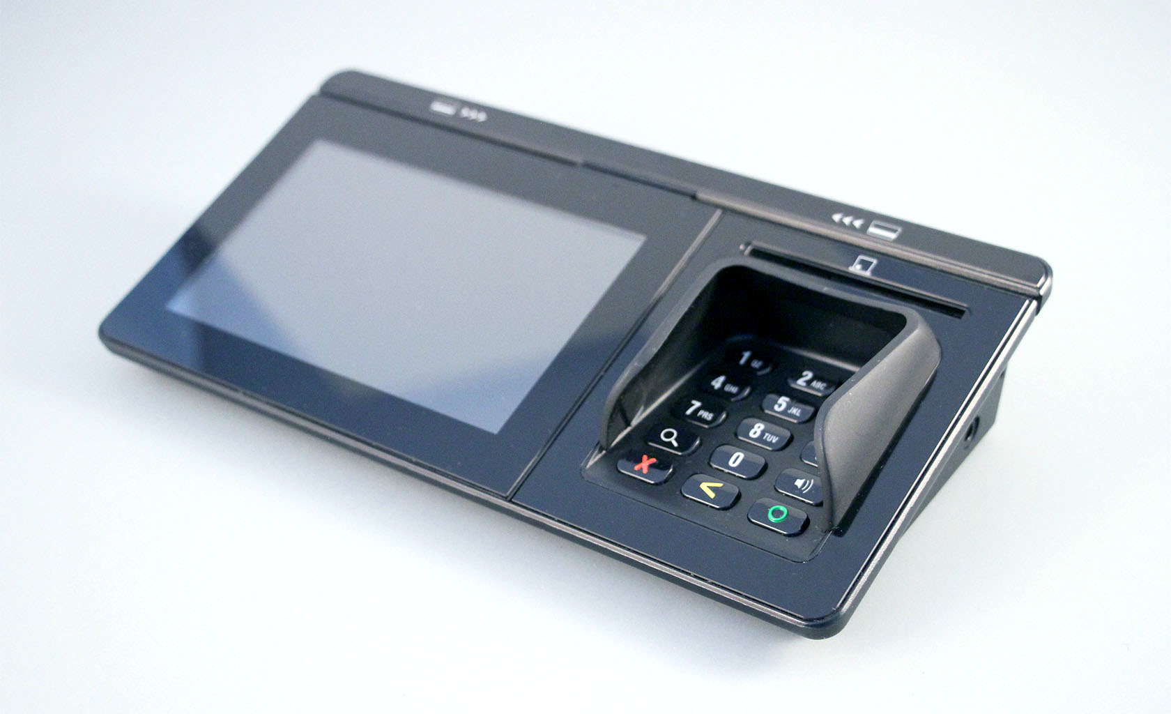 Payment Terminal, with 5" Touch Screen (Signature Capture), Wi-Fi & Bluetooth & 4G/LTE connectivity, with high end security features. Chip (Smart) Card reader, Card 'TAP' (RFID) and Magnetic Strip Card Reader. Optional PIN Shield.