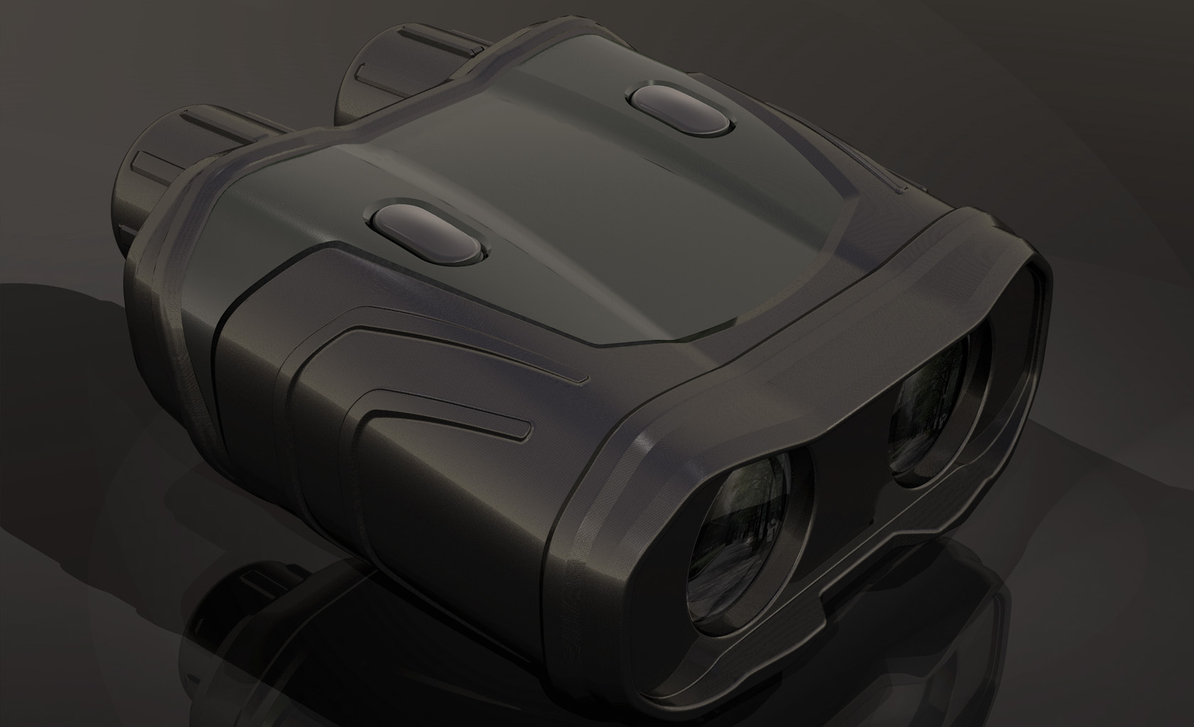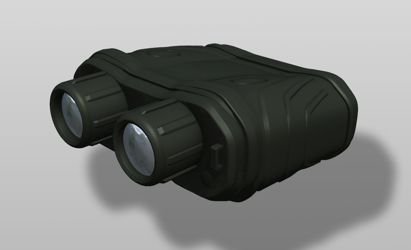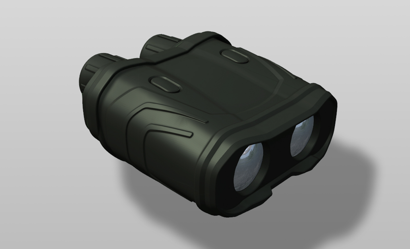 Military Range Finder, impact resistant up to 50G, ‘thick-glove’ operation including fine interpupillary distance adjustment, optics sealed and vibration mounted, no tool battery compartment, overall IP 67. Over-molding used both for additional impact protection and as a low cost gasket.